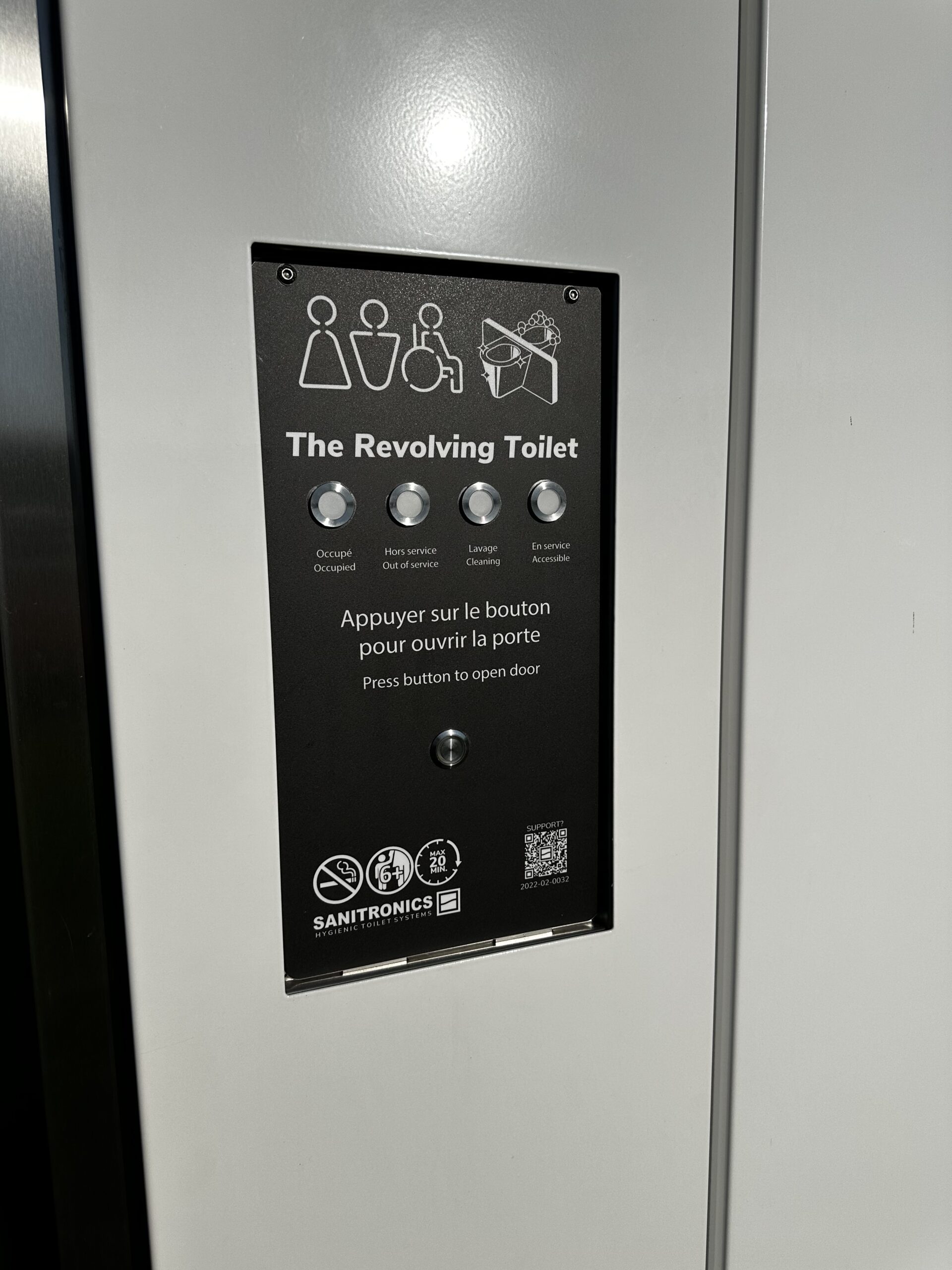 This Stand-Alone is equipped with a 'The Revolving Toilet' system and is designed to be wheelchair-accessible.