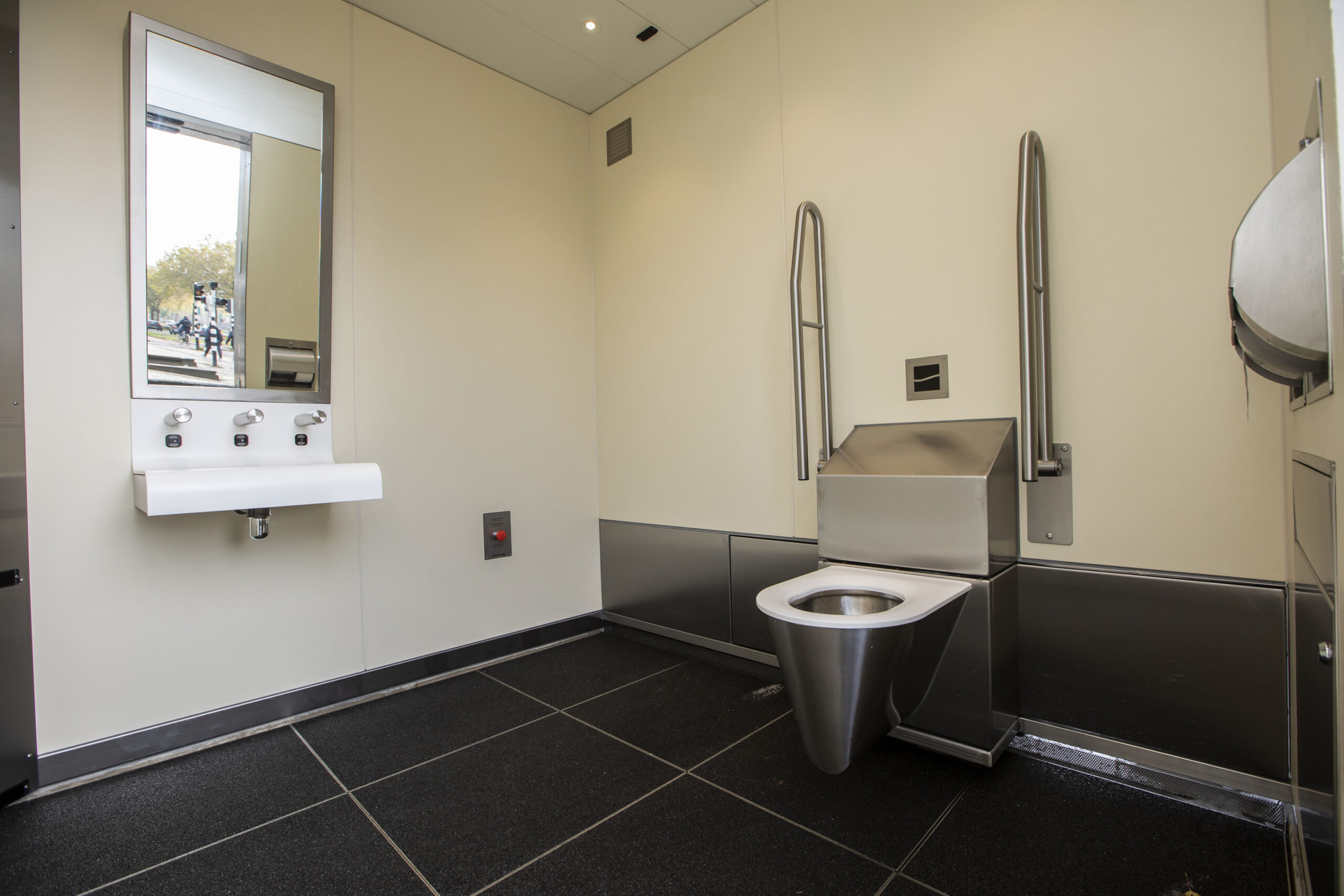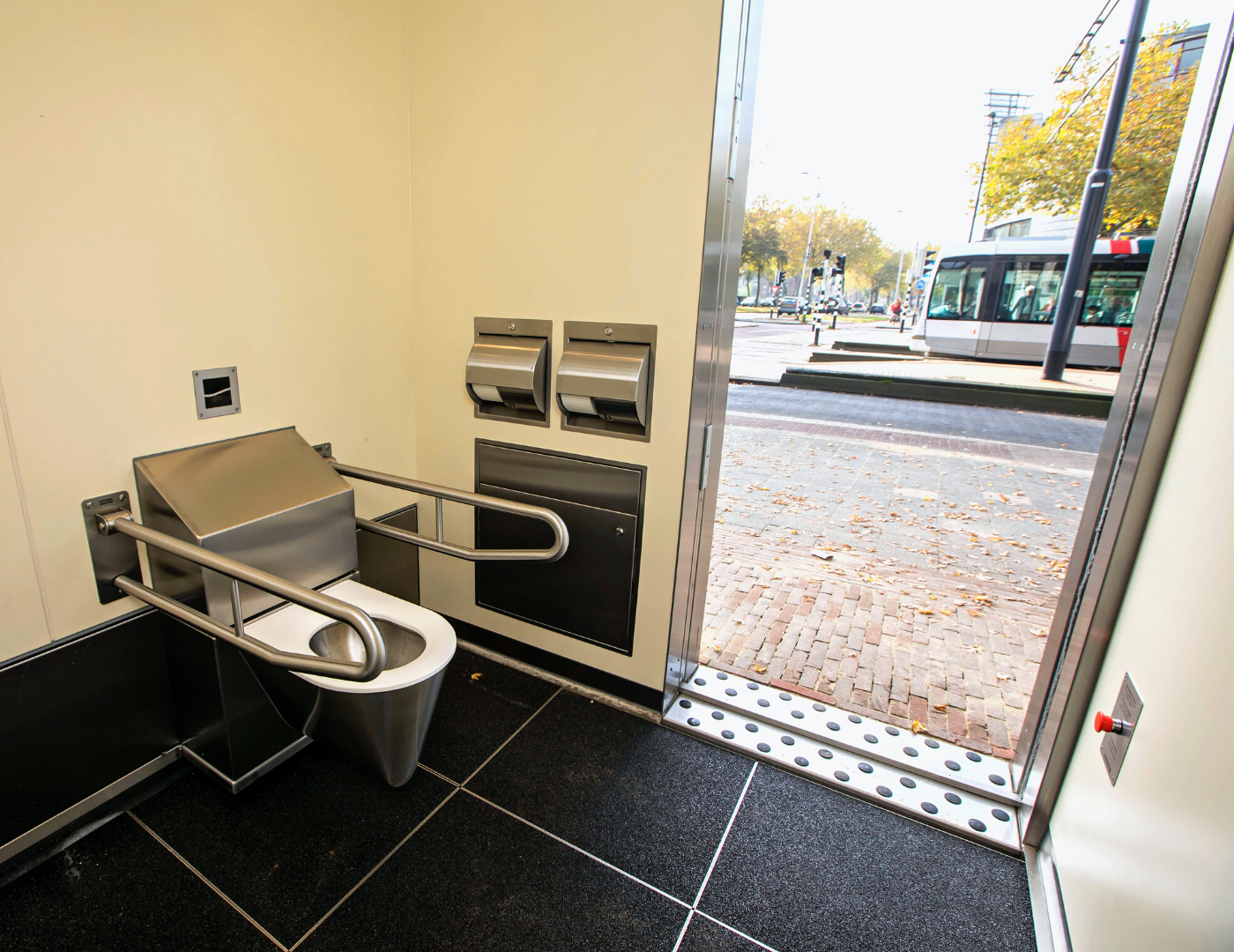 This wheelchair-accessible restroom, equipped with a Revolving Toilet system, is part of a larger rollout of public toilets for the Municipality of Rotterdam. With these previous-generation standalone units, we continue to work towards more accessible restroom solutions across the city.